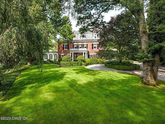 There are soaring 10 foot plus ceilings, fine moldings, a sweeping staircase from the first to the third floor. Thoughtfully restored and updated by the current owners offering 6 BDRMS, 7 FB, 6 fireplaces, formal and casual dining rooms, sunroom, study, formal living room and family room. Other features; a gunite pool, elevator to all 4 floors, 3 car garage and slate roof. Also includes a gym, billiards room, and second kitchen on the lower level. The primary suite offers unparalleled luxury, the property; privacy on 2 acres just minutes from downtown Greenwich.