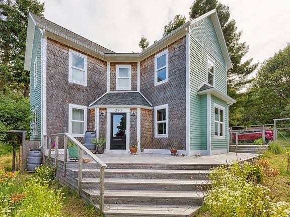 Fully-fenced front and back yards with garden space, fruit trees and 2 sheds for storage or shop use. Private driveway with off-street parking. A very unique and special property in Port Orford.