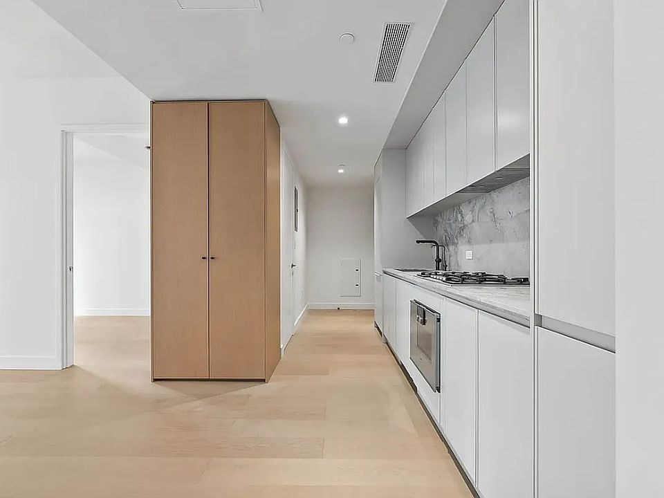 Enter Residence 10E, a spacious and airy two-bedroom sanctuary filled with natural light pouring through floor-to-ceiling oversized windows. The open kitchen is a culinary masterpiece, featuring pristine marble countertops, a striking backsplash, and an island complemented by sleek white lacquer cabinets. Integrated high-end appliances, including a Thermador refrigerator and Bosch dishwasher, ensure a seamless cooking experience. Every residence is thoughtfully equipped with central air conditioning, an in-unit washer and dryer, and a smart entry lock for your convenience.
