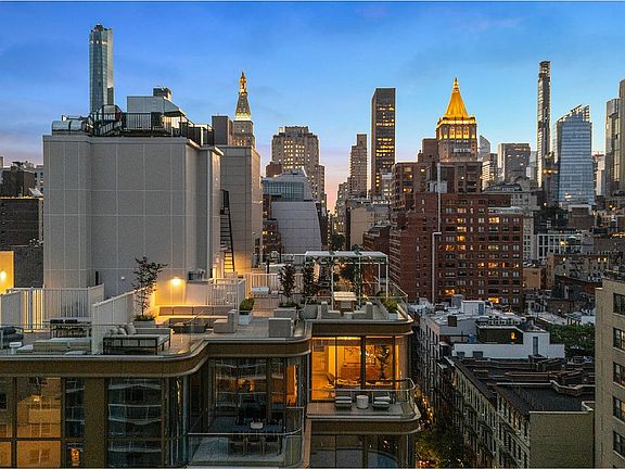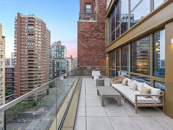 Enter Residence 11A, a spacious and airy two-bedroom sanctuary filled with natural light pouring through floor-to-ceiling oversized windows. The open kitchen is a culinary masterpiece, featuring pristine marble countertops, a striking backsplash, and an island complemented by sleek wooden cabinets. Integrated high-end appliances, including a Thermador refrigerator and Bosch dishwasher, ensure a seamless cooking experience. Every residence is thoughtfully equipped with central air conditioning, an in-unit washer and dryer, and a smart entry lock for your convenience. One of the standout features of this unit is the private 313 sq ft terrace—an urban oasis perfect for morning coffee, outdoor dining, or simply relaxing in the fresh air.