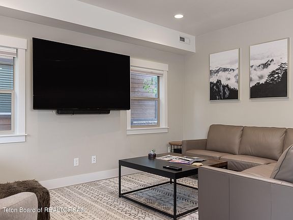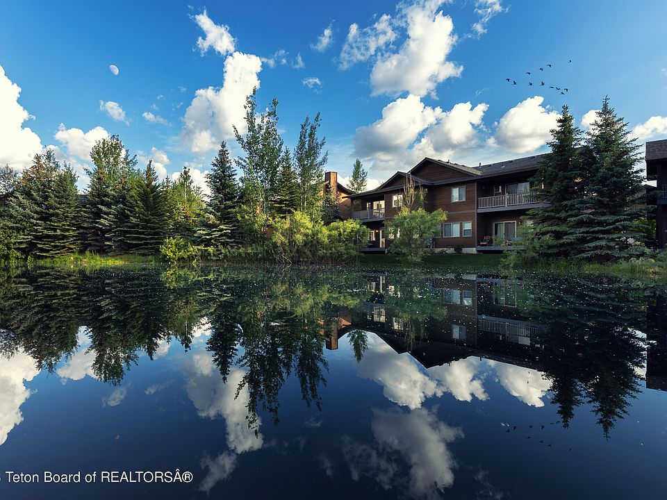 This floor plan shared only with the adjoining unit is unique to Trail Creek Springs, an exclusive, luxury townhouse community. The main floor offers a private office, powder room, open concept living area, upgraded kitchen and large Trex deck overlooking a beautiful pond fed by Trail Creek. In addition to the two large guest bedrooms and bath, upstairs you will find an ample walk-in laundry and huge primary suite. The suite's walkout deck rounds out some of the most private outdoor areas in the development surrounded by willows, mature landscaping and the water's edge. This townhouse features numerous designer touches including custom painted cabinetry and stylish fixtures. Offered turnkey with new, high-end furnishings and contents, this home is ready for your Teton Valley adventure!