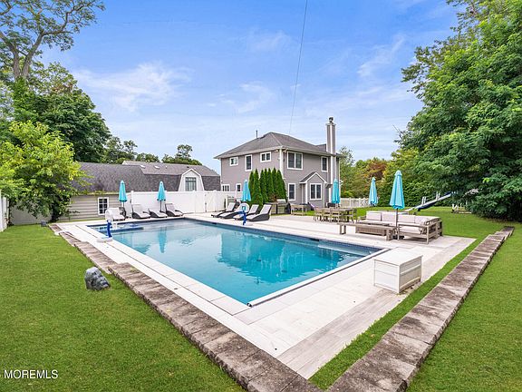 Come and see this great house with in ground heated concrete pool! This home boasts hardwood floors throughout. Den, dining room and living room. Newer kitchen with stainless appliances. Primary suite with new bathroom. Finished basement with bedroom and full bath. all this with a beautiful private yard with in ground concrete pool with electric cover and jacuzzi! This home has it all! Plus nice yard for a swing set. Call today! Great location- quiet block close to houses of worship, shopping and one mile to the beach!