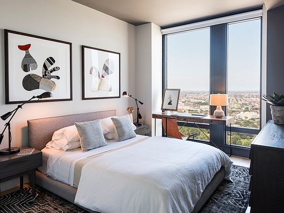 Full service amenities include the state-of-the-art fitness studio offering daily classes and an outdoor fitness area, outdoor movie screening area, demo kitchen, barbecue area, and billiard room. The view from the 53rd floor roof deck and resident lounge will take your breath away.