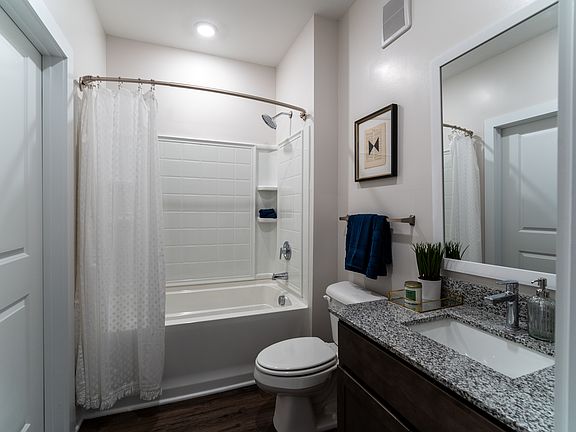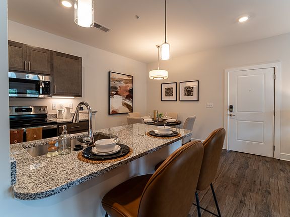 Select units include garden tubs, walk-in showers, and pantries. Enjoy resort-style amenities including a pool, outdoor living area, pet park with grooming station, 24-hour fitness center, detached garage parking, Amazon package locker, EV charging stations, and car wash stations.