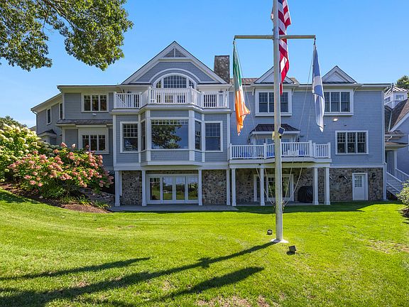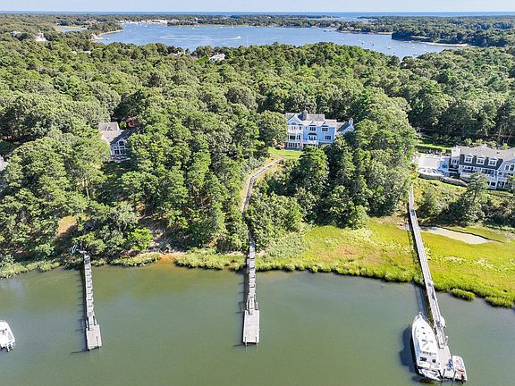 Set on a bluff overlooking Prince Cove, this extraordinary waterfront estate was meticulously designed and built with no expense spared. From the private deep-water dock with access to Nantucket Sound to the expansive pool terrace with a cabana and pool house, every detail was thoughtfully planned to embrace the surrounding natural beauty with unmatched luxury. Immediately upon entering the residence, elevated quality and craftsmanship are readily apparent in the foyer with 4'' wide Red Birch floors, raised panel walls, and wainscoting. At the heart of the home, an open concept layout seamlessly flows between living, dining, and cooking spaces. Breathtaking water views, coffered ceilings, and a see-through fireplace set the stage in the family room, with access to a spacious waterside balcony. The eat-in kitchen is a chef's dream, outfitted with top-of-the-line appliances, custom Tiger Maple cabinets, and hand-painted ceramic tiles, while the adjacent dining room provides ample space for grand entertaining. A stately library with rich millwork sits at the middle of the home, separating the main living area from an office, and a private wing with two well-appointed bedrooms that offer refined accommodations for guests. On the second level, a luxurious primary suite boasts conical cathedral ceilings, oversized windows, and glass doors that open to a private balcony overlooking Prince Cove. A lounge area, sumptuous en suite bathroom, and two large walk-in closets leave nothing to be desired. Two en suite bedrooms are located just down the hall, each with unobstructed water views. The perfect place to retreat on rainy days or after dinner, the fully finished walkout lower level includes a Billiard room, home theater, and wet bar with soaring 9' coffered ceilings throughout. Additional highlights include a three-season sunroom with a fieldstone fireplace, attached garage space for five cars, and state-of-the-art systems. Designed to perfection, this exquisite waterfront estate offers a resort-like setting with total privacy on sought-after Prince Cove.