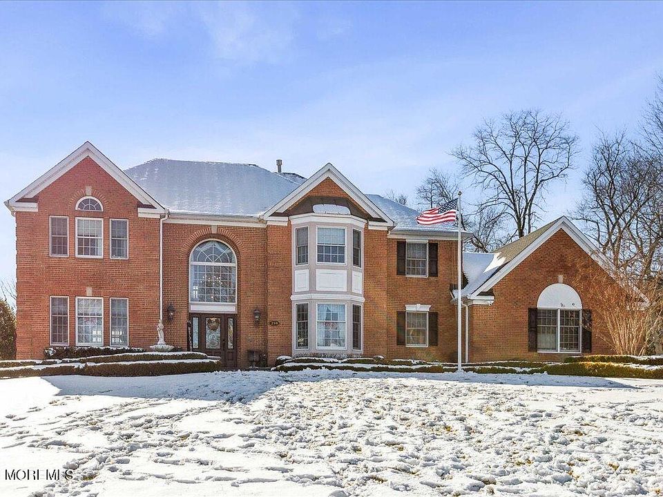 Welcome to the epitome of luxury living in the sought-after Champions Run Development of East Freehold. This exquisite Custom-Built Center Hall Colonial boasts unparalleled elegance and sophistication with numerous updates and amenities. Upon entering, you are greeted by a grand two-story foyer adorned with palladium windows and gleaming hardwood flooring that flows seamlessly throughout the home. The attention to detail is evident, with decorative moldings gracing each room. Entertain guests in the spacious dining room featuring custom moldings and a tray ceiling, or relax in the sun-filled formal living room. The heart of the home lies in the impressive two-story great room with a gas fireplace and recessed lighting, creating a warm and inviting atmosphere. The gourmet eat-in kitchen is a chef's dream, equipped with 42" cabinets, granite counters, backsplash, stainless steel appliances, a center island, and recessed lighting. A large first-floor bedroom and updated full bath offer convenience and versatility. The second level features generously sized bedrooms, large main bath with dual sinks, primary suite with vaulted ceiling, bay window, recessed lighting, walk-in closet, and an ensuite bath complete with a soaking tub, shower stall, and dual vanities. NEW HVAC system, hot water heater, and roof. Additional highlights include a beautifully finished basement, ample closet and storage space, 2-car side entry garage, oversized Belgium block driveway, paver walkways, irrigation system, security system, and professionally landscaped grounds with exterior lighting. Step outside to your fully fenced country club yard, complete with a paver patio, pergola, and a new heated saltwater pool with slide and fountain, offering endless outdoor enjoyment and relaxation. Located in the top-rated Freehold Township School System and ideally situated near major highways, NYC transportation, beaches, shopping, and downtown Freehold. This magnificent home truly exemplifies perfection in every aspect. A PERFECT 10!