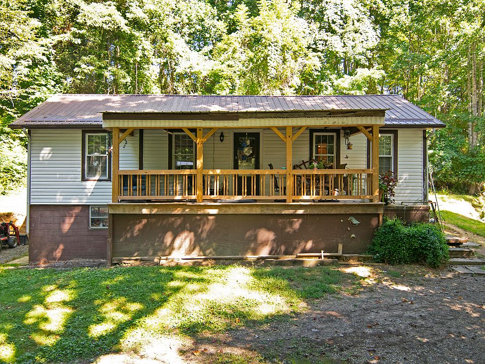 Cottage-style home approximately 2 miles from downtown Beckley. 2 bedrooms, 2 baths, covered front and back porches. Carport, barn-style outbuilding and greenhouse. Private wooded setting on approximately 4 acres.This cozy home is tucked in the woods just off Robert C. Byrd Drive, near the Sofia Interstate 64/77 exit. The surrounding woods creates privacy, while the setting offers the convenience of a nearby 4-lane highway and proximity to stores, services and downtown Beckley. The covered front porch overlooks the mature forest. The home has white vinyl siding and a metal roof. The cottage-style interior layout consists of a living room, kitchen, two bedrooms and two baths, all on one level. Floors throughout the home are manufactured wood. The living room has two ceiling fans and a decorative electric fireplace.