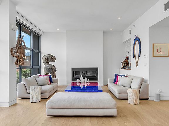 Cozy fireplacePrivate terracePanoramic manhattan skyline viewsDesigner finishesSunlit home officeRefined interiorsSleek boffi kitchen