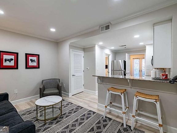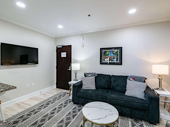GAMEDAY Condo 521 - 1/1 with Eastern view towards Downtown. Excellent condition. Updates include; new living room furniture, new LVP flooring throughout, paint, appliances & linens. Beth update sincluse new lighting and new vanity. Kitchen has white cabinets & tile backsplash. All GAMEDAY condos are fully furnished with all the furniture, linens, appliances, electronics, and household items included in the price. Optional on-site management company will lease the condo for you when you are not there. Walk to Sanford Stadium and UGA campus. Association dues cover water, sewer, trash pick up, common area maintenance, insurance on building, hi-speed internet access, extended satellite television, security, and parking.