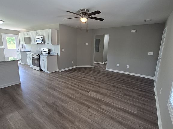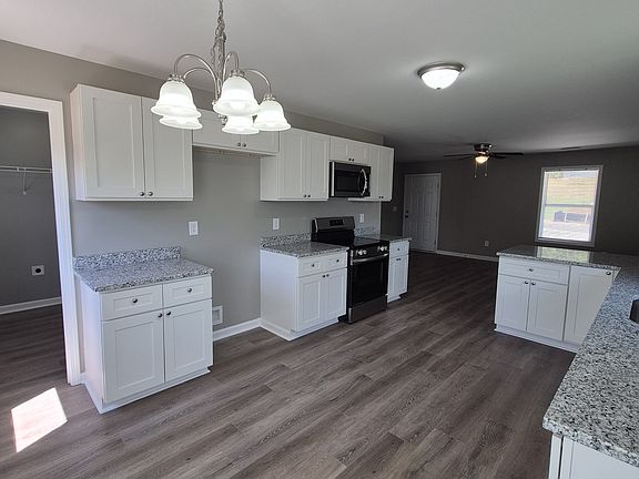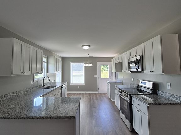 Welcome to this beautiful new construction home featuring 4 spacious bedrooms and 2 full bathrooms, thoughtfully designed with an open floor plan perfect for modern living. The primary suite is conveniently located on the main floor, complete with a private ensuite bath for your comfort and relaxation. Step inside to find luxury vinyl plank (LVP) flooring in the common areas, providing durability and style, while cozy carpet adds warmth to each bedroom. The heart of the home is the kitchen, boasting stainless steel appliances and granite countertops that offer both functionality and sleek appeal.