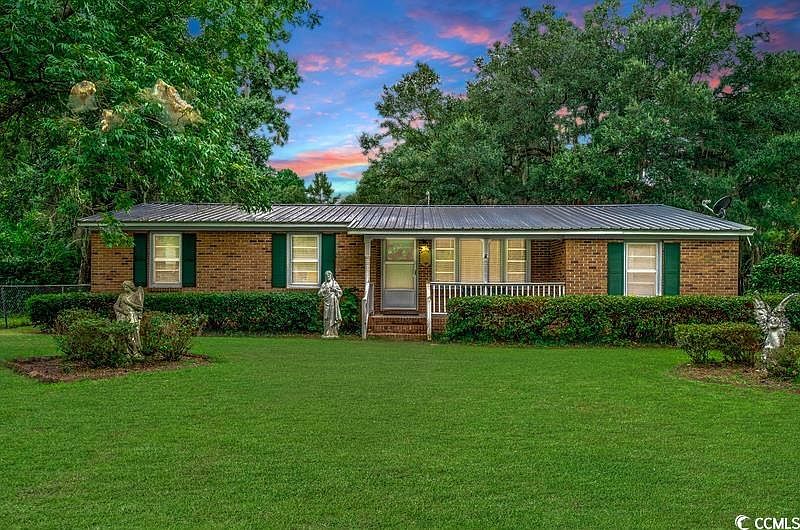 Located just 2 miles from Coastal Carolina University and under 3 miles to Historic Downtown Conway and the Riverwalk, this charming all-brick, 4-bedroom, 2-bath home with no HOA or HOA dues offers comfort, convenience, and character! One bedroom is currently used as a laundry/utility room but could easily be converted back. The home features beautiful real hardwood floors in select areas, a cozy brick fireplace (wood-burning or gas), and a metal roof installed approximately 4 years ago for added peace of mind. The spacious living room includes a built-in entertainment center for added storage and function. Outside, you’ll find a 24x15 detached building with electricity—perfect for a workshop, hobby space, or extra storage. There’s also an attached exterior storage room that could serve as an alternative laundry or utility space if preferred. Situated in a quiet, established neighborhood with easy access to schools, restaurants, shopping, and more—this home has so much to offer!