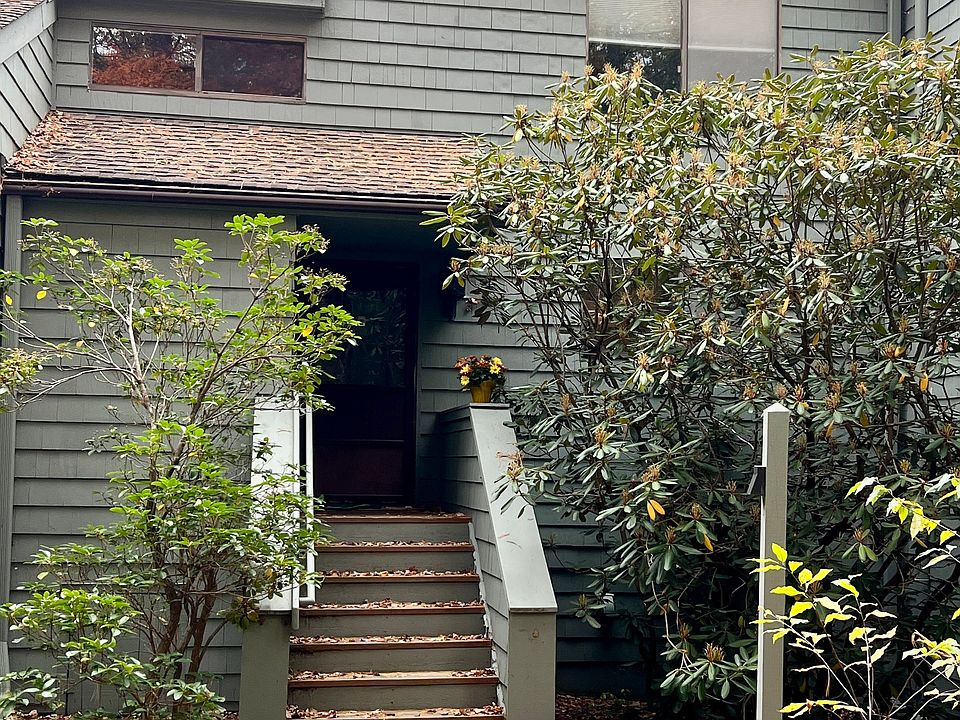Beautifully remodelled Hearthstone with a finished walk-out lower level. Redone by the current owner, this unit is in move in condition. The main level has been opened up for ease of access to cooking, dining, entertaining and access to the outdoors. The kitchen with its stainless appliances has a large island for gathering and a breakfast bar. The living room has a fieldstone woodburning fireplace; perfect for cosy evenings. The dining room has access to the deck for outdoor dining. The deck can also be further expanded. A powder room completes the main level. The ensuite primary has a vaulted ceiling and access to the attic space. Two other guest bedrooms with another full bath complete the second level. The bonus to this home is the finished walk out basement. This area is the full footprint of the unit and has space for an exercise room, family room or a home office. The home has 3 mini-split units for heat & a/c and they are connected to all the rooms.