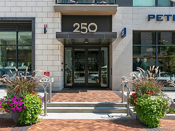 Rarely Available luxury condo at 250 Columbine Residences offers a fantastic floor plan featuring 2 Bedrooms/2 Baths, plus Study. Living in this sought-after location in the heart of Cherry Creek North is amazing! Just walk out your door to enjoy multiple first-class restaurants, shops, galleries or pick up groceries at Whole Foods around the corner. Your Cherry Creek retreat is beautiful and like-new, featuring high quality finishes throughout, Chef's kitchen with marble countertops, and spacious Primary Suite with a built-in desk, heated bath floor and walk-in closet. The large Study has sliding doors for privacy, built-in closets, and the living room features a cozy gas fireplace. Other features include a Guest Bedroom adjacent to a 3/4 bath, large laundry closet, ceiling speakers and automatic shades. The private patio has gas hookup for a grill, and water spigot for potted plants. This highly desirable building offers a fabulous rooftop deck with forever views, firepit, lounging/dining area, BBQ Grills and a heated year-round jetted pool that becomes a spa during the winter. When you want a workout, just head to the 2nd floor fitness center. Two secure parking spaces pre-wired for EV. Front Desk hours are M-F/8-5pm. The perfect Cherry Creek Pied-a-terre!