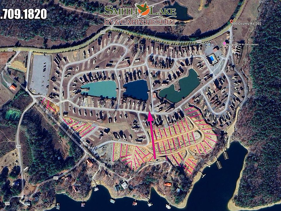 Welcome to the Premier RV Resort on Smith Lake! Experience luxury RV living at its finest in this beautiful lakeside gated resort featuring three scenic ponds, a pickle ball court, a sparkling pool, private access to Smith Lake, and so much more. This is a new lot in Phase 4 of the resort. Close to the pool, club house, boat ramp, boat docks, and more. These lots are ready for your RV and your home. Outside, enjoy a large stamped concrete RV pad, plenty of room for your RV and a home, should you want one on your site, and direct private access to Smith Lake. Additional resort amenities include trailer storage, beautifully maintained grounds, and a welcoming community atmosphere. Whether you're relaxing by the water or enjoying a game of pickle ball, this is truly the ultimate RV resort experience on Smith Lake.