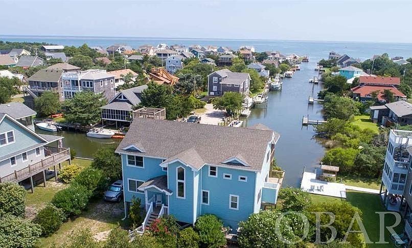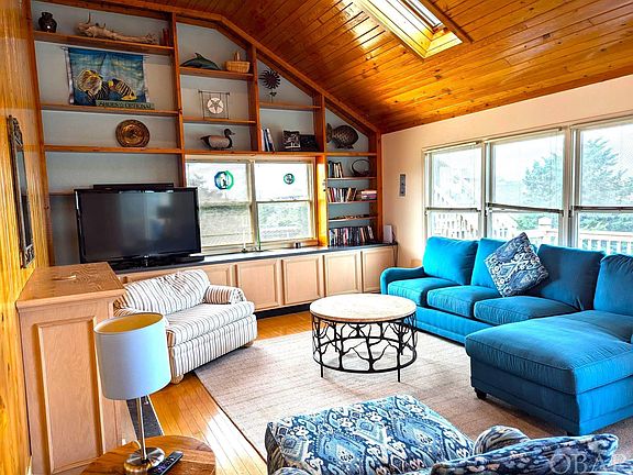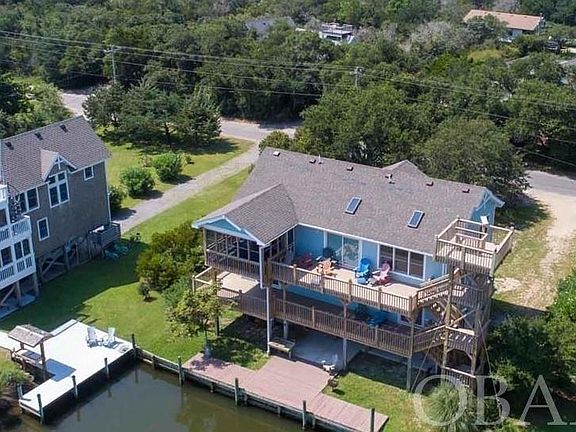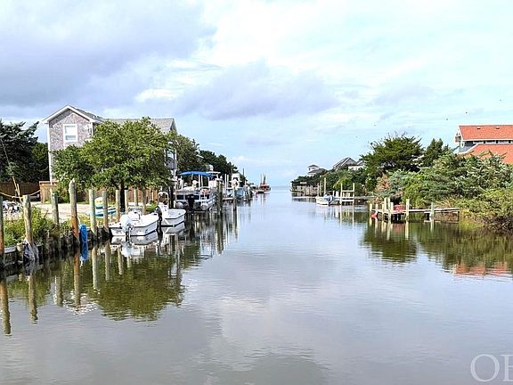 Views, views and more views! A newly painted (interior) 4 bedroom/ 2.5 bath reverse floor plan home located at the end of a canal providing deep water dockage and amazing views of the canal, salt marsh and Pamlico Sound. Easy and direct access to the sound for water enthusiasts! An observation deck, multi level decking, canal-side seating, hammock, and grilling area, a screened porch and a concrete pad underneath the home makes entertaining a breeze! 2 sheds underneath the home are large enough to store all your beach and fishing gear, lawn equipment, bikes and a golf cart. This home is one of the few homes on the island that have a Tesla EV charge port. First floor consists of 4 bedrooms- 2 have sliding glass doors to a canal-side deck with beautiful views, 2 full baths (with dual sinks), one of the bathrooms have a jetted soaking tub with long range canal views and a separate shower. Each bedroom has plenty of closet space and the primary bedroom has spacious twin closets. The laundry area is conveniently located on the first floor as well. The second floor is a spacious open living/dining/kitchen area with cathedral ceilings, skylights, large sliding glass doors to an open deck with phenomenal views, a half bath, a bonus room for gaming or an office, built in shelving and access to a furnished screened in porch. The large kitchen has tiled floors, breakfast bar w/seating and plenty of storage! Amenities include new carpet, hot water heater and washing machine, central heat/ac, ceiling fans, Starlink satellite internet access, internet TV, many windows for natural light, nice furnishings, outdoor shower area and fish cleaning bench.