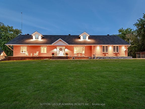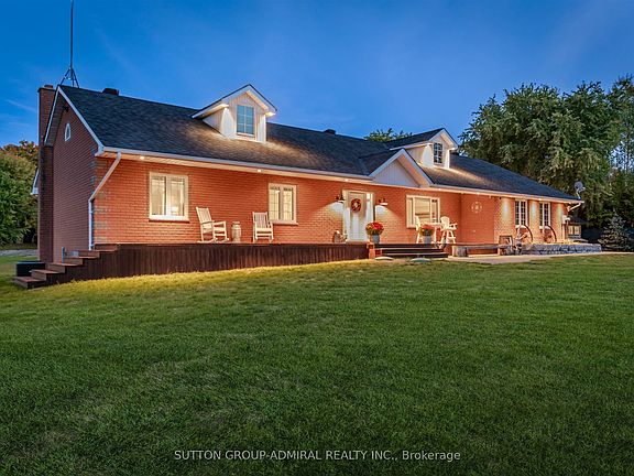 Charming Brick Bungalow on 10 Acres with Incredible Workshop & Outdoor Living, ideal for car enthusiasts, contractors or anyone craving space and privacy. This property is a rare opportunity offering both a comfortable home and a massive workshop. Professionally engineered structure with 16 ft ceilings, equipped with a 200 amp service and features 3 oversized 14' by 14' garage doors, 1 additional 10' 12' door, and 2 metal man doors. Endless potential for storage or hobby use. The interior of the home features 3 spacious bedrooms floor plus 3 fully renovated bathrooms on the main level. Open-concept family room with electric fireplace, pot lighting and hardwood floors. Generous kitchen with center island, breakfast bar, and large eating area with walk-out to deck. Partially finished lower level with additional bedrooms, 4-piece bathroom and flexible space to create a large recreational room, games area, or home gym with separate entrance via garage. Professionally landscaped with garden beds, composite deck and flagstone firepit area. Huge approx. 1200 sq.ft. aggregate concrete patio-perfect for entertaining. Interlock front walkway with 80mm pavers. Chicken coop with run & power plus goat pen with coop- ideal for a mini hobby farm. Attached double car garage and expansive asphalt driveway with ample parking for multiple vehicles. Great location, approximately 15 minute drive to highway 400! Whether you are looking for peaceful rural living or need a property with a serious workshop space, this one-of-a-kind bungalow checks all the boxes. Don't miss your chance to make this exceptional property yours!