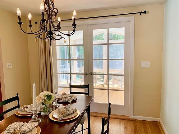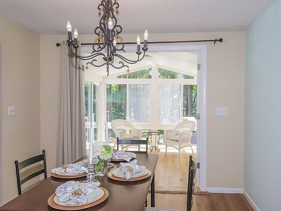 A charming ranch with so much to offer on a lovely acre lot in desirable North Chelmsford! This home boasts gleaming hardwood floors throughout its family room, dining room, three bedrooms and sunroom. The family room also showcases a beautiful floor-to-ceiling stone fireplace and a pretty bow window. Oversized french doors open from the dining room into a lovely sunroom with a cathedral ceiling and full walls of glass doors and windows. Sliders from the sunroom lead to a 28' X 10' composite deck overlooking the vast and grassy backyard. Kitchen has solid surface counters, a gas range and open space for a sitting area or more cabinetry. Both bathrooms have modern vanities and ceramic tile showers. The lower level offers a walkout, large playroom with attractive white wood built ins, laundry room and a cedar closet. A quaint gas stove heats the lower level. Bonus area includes a mudroom between the garage and kitchen.