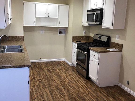 Duplex for rent. All new paint, new laminate flooring, new vertical blinds, all new kitchen cabinets, new windows, parking, washer and dryer hook ups, stove and garage Owner pays for water.