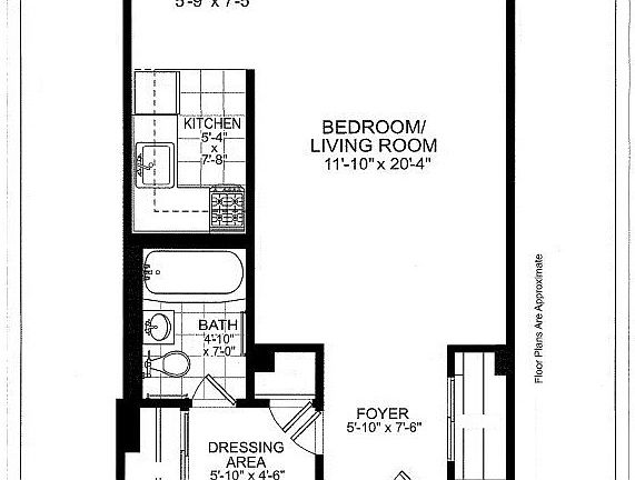 Bright, alcove Studio with Dining area. Dressing area, plus three closets. Through the wall A/C included.