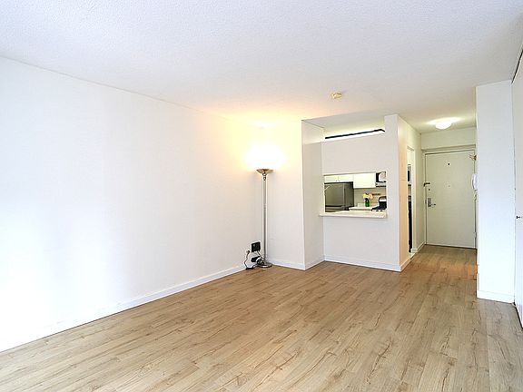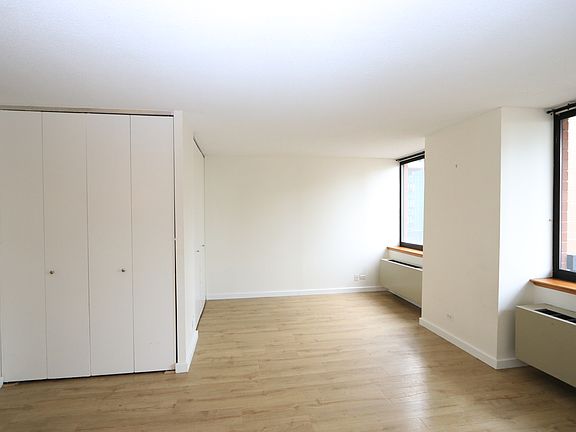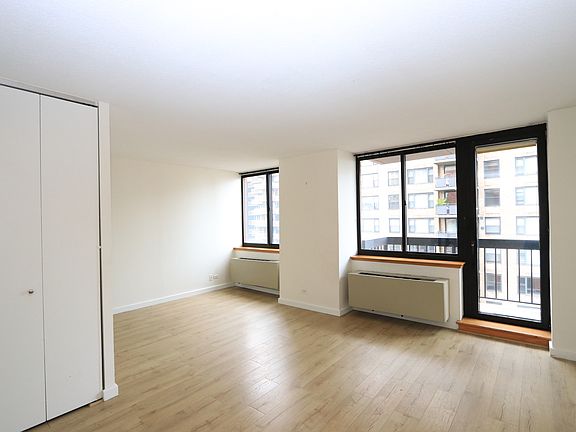 Spacious, light-filled alcove studio with private balcony on the 31st floor in a full-service doorman building featuring modern finishes and amenities. The open floor plan has a generous sleeping alcove, with a spacious living and dining area, with a private balcony to relax and enjoy city views.