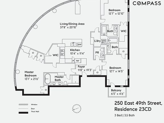 This 2086 square foot apartment home has 3 bedrooms and 3.5 bathrooms. This home is located at 250 E 49th St APT 23CD, New York, NY 10017.
