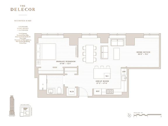 Come home to 14D - a north facing 1 bedroom/1 bath with a home office at The Delecor, the newest and most luxurious rental residential tower, where contemporary design meets unparalleled luxury.
