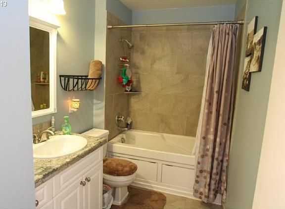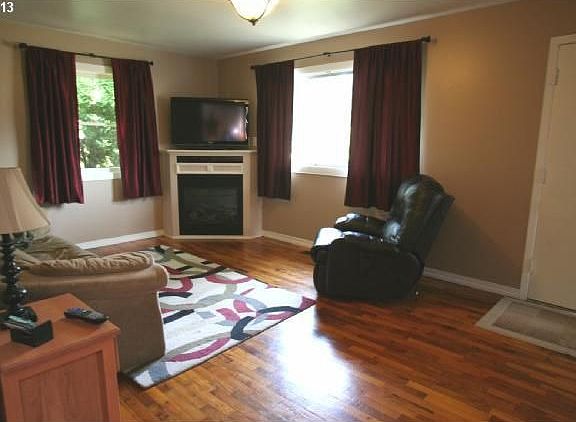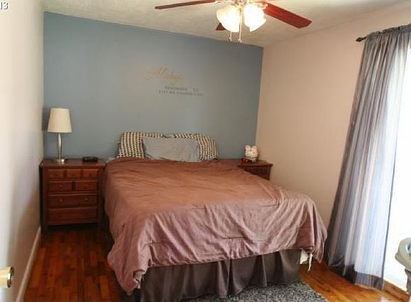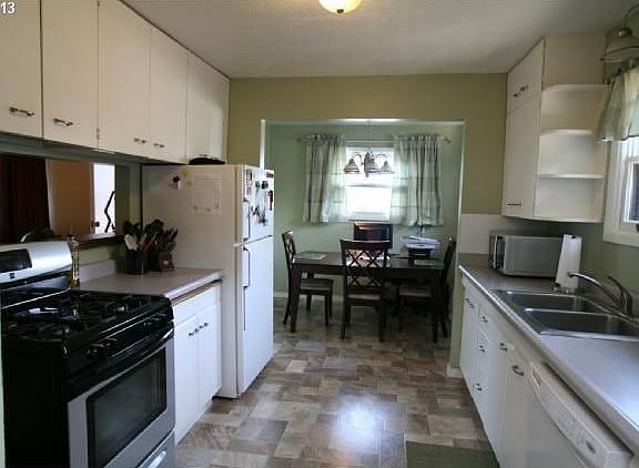 Newer Roof, Paint, Heat Pump, tankless hot water heater, more insulation blown in walls,gas fireplace, upgrades include finished garage, tile and Granite in Bathroom, stamped concrete patio. Jetted Tub.Off Street Parking.The Range is Gas.Original Hardwood floors, Fenced and landscaped Yard. Lots of storage above garage also! Sweet little starter home!