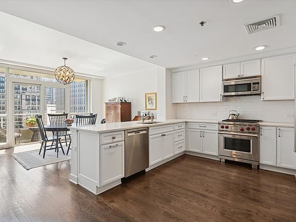 This stunning 2 bedroom residence, located in The Pearson, one of Chicago's premiere buildings, offers spectacular views of the lake, city, Navy Pier, and Lake Shore Park. Sun-filled and updated! Rarely available floor plan with large open living spaces. A gourmet kitchen with custom cabinetry, quartz counter tops, filtered instant hot/cold water, & high-end stainless appliances(Sub-zero, Wolf, Dacor), 2 ensuite bedrooms plus powder room, new washer/dryer. A generous primary suite with an amazing spa bathroom featuring heated floors, steam shower, water closet, and Bluetooth sound system. Other features include a large south facing terrace, solid hardwood flooring throughout, crown moldings, solid core doors, Grohe and Kohler fixtures, tremendous closet (customized and fitted) and storage space, in-unit washer/dryer. Full service building with 24 hour door staff, on-site manager, state of the art fitness room, rooftop party room and deck. Ideally located across from Lakeshore Park and steps from the lake, shopping, dining, theater and museums, and all that Streeterville and the Gold Coast neighborhoods offer. Storage and parking included.
