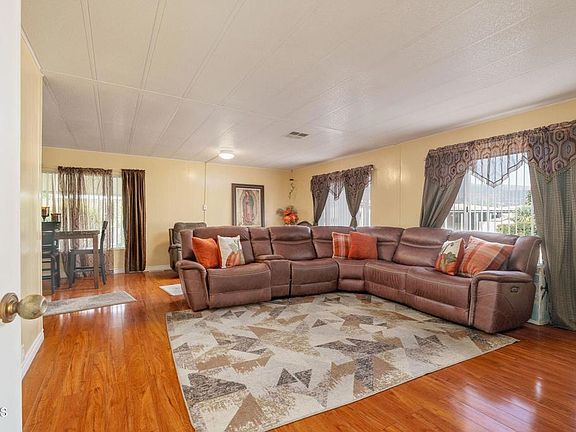 Welcome to El Dorado 'Family' MHP. This mobile home features a cozy and open concept with 1440 sp. ft of living space and over size yard. Principal bedroom has 2 closets, spacious full bath with vanity. both bathrooms were upgraded. Indoor laundry room with upper storage cabinets. Parking for 2 cars, also includes 2 sheds for extra storage. A/C for those summer/hot days. Community amenities include swimming pool, jacuzzi and much more.