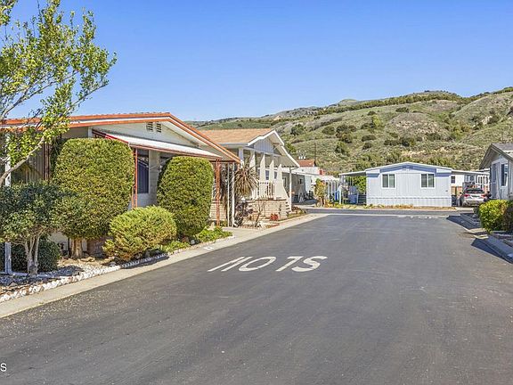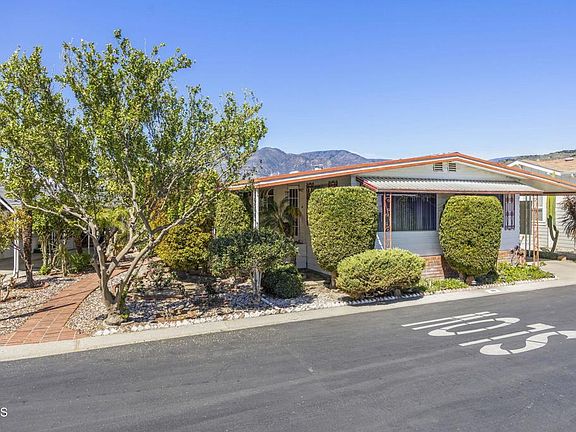 Welcome to the all-ages El Dorado MHP in the historic community of Fillmore. This tropical and beautifully-landscaped property has an open-concept living area with two bedrooms and two baths. Immaculately-maintained and with a Midcentury Modern flair, this home has both a spacious formal living room and a large family room. The colorful kitchen and fabulous private outdoor space calls for al fresco dining on the lovely private deck. There is an abundance of fruit trees, including a well-producing lemon tree and kumquat tree. Ample storage, a laundry room and AC make this the perfect home for all seasons.