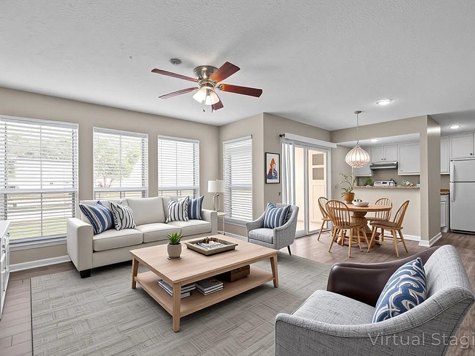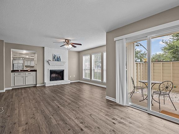 Welcome Home to this stunning 2-bedroom, 2-bathroom corner unit condo! Upon entering, you're greeted by the sight of recently installed beautiful floors throughout the living areas. The living room features striking large windows that provide ample natural light. Cozy up next to the fireplace on those chilly nights and enjoy a nice beverage from the wet bar area located nearby. The kitchen features granite countertops and wood cabinetry. Washer and dryer and refrigerator included. The two bedrooms are sized generously. The primary bedroom includes a large closet, perfect for all your storage needs. The bathrooms have tile and are equipped with modern amenities and fixtures. RECENTLY INSTALLED HVAC 8-6-25; Additional features include ceiling fans throughout, and a lovely patio perfect for morning coffee. This home is near local shopping centers, restaurants, hospitals and much more. Don't miss the chance to call this home. Schedule Tour Today