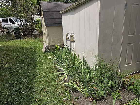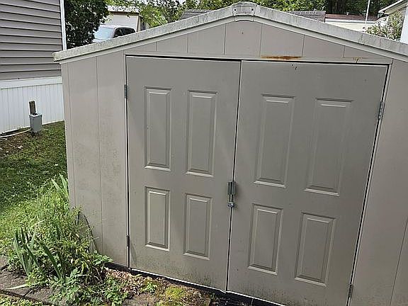 Great covered front porch with 2 stairways - the front risers are shorter than average for ease of any mobility issues. Gates on both staircases and nothing gets wet - ever! 2 large sheds on back of property, and storage under the porch complete with a hinged access door at the back. Two-car driveway.