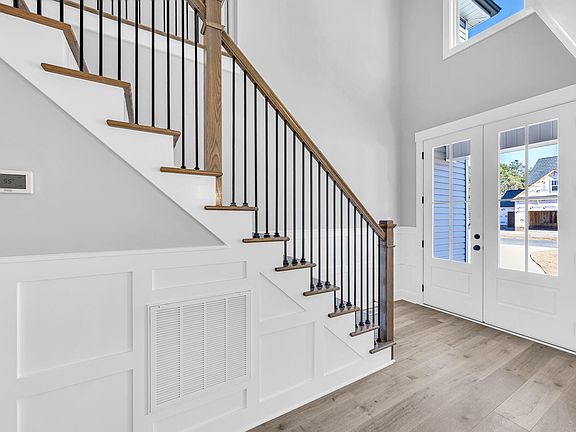 Step inside and be greeted by a sweeping statement staircase rising beneath sky-high ceilings, setting an unforgettable tone the moment you enter. This thoughtfully crafted two-story home offers all bedrooms upstairs, each with its own walk-in closet enriched by the builder's signature wood-built organization. The main living area is elevated by a striking shiplap feature wall, lending warmth and character as the holidays approach. An inviting flow leads to the screened-in porch and adjoining grilling deck, an ideal backdrop for gathering as the year winds down and new memories prepare to take shape. A three-car garage provides abundant space for storage, hobbies, or wintertime gear. With richly detailed woodwork throughout, from wainscoting to coffered accents, this home reflects craftsmanship meant to be appreciated in every season. Welcome the new year in a space that feels both elegant and homey.