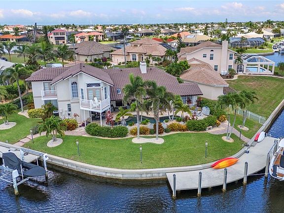 Custom-built waterfront masterpiece in Punta Gorda Isles. This immaculate home features 154 ft of seawall (SEAWALLS are maintained by the city of Punta Gorda) on intersecting canals in the desirable powerboat section. Ideal for boaters with 60-ft and 30-ft docks, lifts, water, and electric with quick Harbor access. Thoughtfully designed 3 BR, 3 BA plus den layout includes a first-floor owner’s suite, open great room, and chef’s kitchen with upgraded finishes. Two-story guest wing offers 2 bedrooms, 2 baths, and a loft with dual balconies. Enjoy resort-style Florida living with a heated pool, spa, and 3 waterfalls overlooking sparkling canal views. Additional highlights include an exercise/safe room, oversized garage, modern upgrades, and a new roof (2024). new water heaters, new decking on the balconies, new roof 2024 with transferrable warranty. 2021 Washer & Dryer. Exterior and interior repainted in 2021 and a whole house reverse osmosis filtration system. Rare opportunity for luxury, design, and boating convenience on one of PGI’s premier canal tip lots! on a cul du sac walkable to many Punta Gorda Isles parks, attractions, the library and famers markets. Recent Survey and Elevation Certificate.