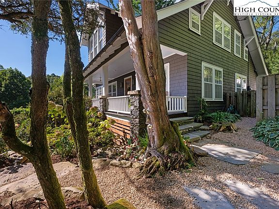 This extraordinary property has been masterfully restored to blend historic craftsmanship with modern refinement. Expansive porches, a bespoke log cabin, and the bold sound of New Year’s Creek create a timeless full time home or mountain getaway. Bordering the Glen Burney Trail and an equally short stroll to Blowing Rock’s vibrant Main Street, this in-town location allows for both incredible convenience and a private retreat. At the heart of the home lies a premier chef’s kitchen appointed with custom cabinetry, marble counters, 36-inch gas Wolf range, Sub-Zero wine and column refrigerators, freezer drawers and an oversized island for gathering. Expansive kitchen windows frame a serene fenced lawn and mountain view down to the creek, while a butler’s pantry with soapstone counters, beverage drawers, and a Scotsman pebble ice maker opens directly to a flagstone terrace for effortless entertaining. Historic elements including Grandfather Stone fireplace, heart of pine floors, and original millwork have been meticulously preserved, while modern luxuries enhance everyday living. The sunroom and primary suite feature phantom screens to capture sweeping breezes and vistas, while a marble-clad bathroom and a custom white oak vanity in the primary en suite provide an atmosphere of understated elegance. The internal infrastructure has been updated, including HVAC, plumbing, electrical, central vacuum and connections to town water and sewer. Once a part of the Charles Bolick Estate, the grounds are comprised of two lots, a living legacy cared for by local arborists and planted with heirloom apple trees, native rhododendrons, a chestnut, and an Eastern White Pine affectionately known as “Betty White.” From the rocking-chair front porch, enjoy views of the Linville peaks including Table Rock and Hawksbill. The painstakingly reassembled historical log cabin locally sourced from Tennessee, offers a rare additional retreat, fusing heritage with modern comfort. With its expansive yet easily maintained landscape, flat parking, and a coveted location within a stone’s throw to Main Street, this estate embodies historic significance, refined luxury, and an unmatched connection to Blowing Rock’s historic heritage.