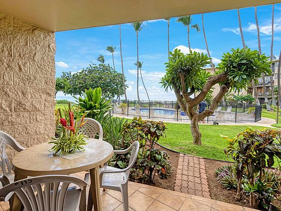 Talk about location, location location! All the conveniences of home and just steps from the ocean at Ma’alaea Bay at the beachfront Kanai A Nalu. This beautiful 2 bedroom, 2 bathroom remodeled vacation rental with a tropical feel can sleep 6; the master bedroom has an en suite bathroom. This ground-floor unit features tile flooring throughout, island-style furniture, and a stunning kitchen with granite counters. The unit also boasts a full-size, front-loading washer and dryer, TVs with complimentary cable service, free wifi and high-speed internet, and air conditioning in the living room. Enjoy the ocean-view lanai as you listen to the ocean or stroll onto the lawn and relax by the pool. Currently an active vacation rental with Destination Maui. Adjacent to the complex is the wide, sandy, and serene Sugar Beach, over 2 miles long, ideal for soul-warming morning or evening strolls and whale-watching in the winter months. The Ma’alaea boat harbor (offering all kinds of snorkeling, whale watching and dinner cruise opportunities), and Maui’s world-class aquarium are just a short walk away, as well as a hub of shops and restaurants and an amusement park for the whole family. So much to enjoy on your doorstep! Ma’alaea itself is convenient to the Airport, Wailuku, Kahului and South Maui (all no more than 15 minutes away), and on the way via the breathtaking coast road to Lahaina, Ka’anapali, Kapalua and Maui’s West Side. Property is a leasehold.