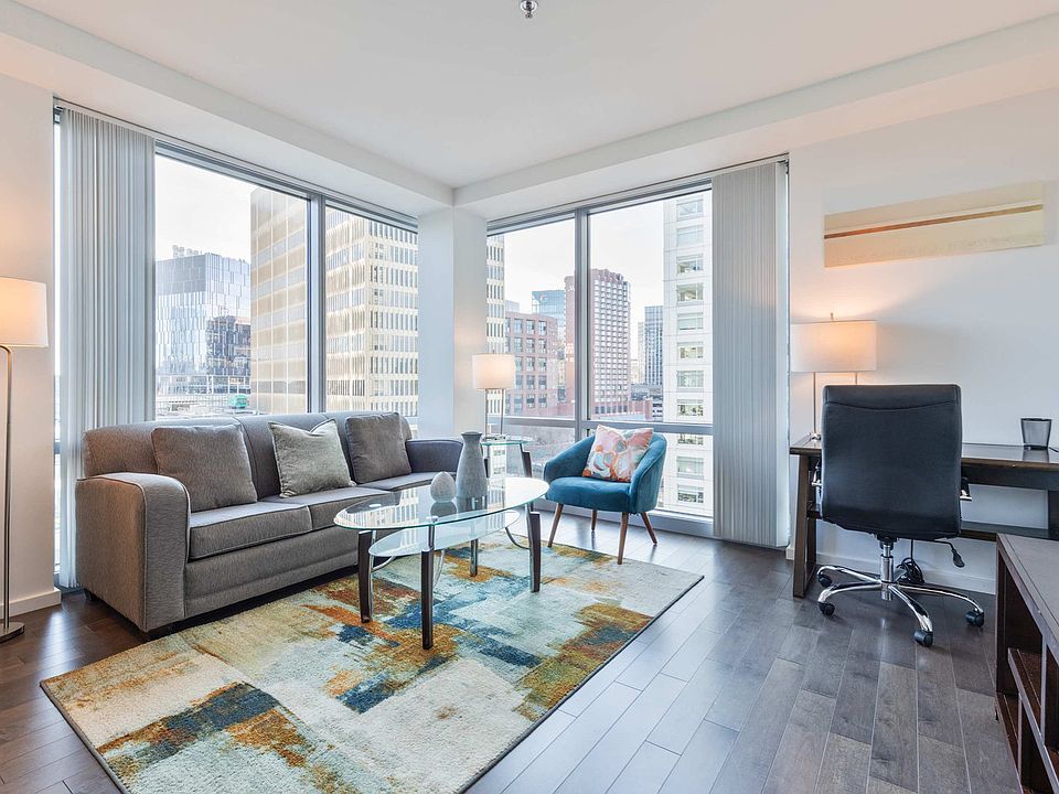 Luxury amenities mixed with a thriving neighborhood make this Watermark Kendall East apartment the perfect destination for your short-term stay. With amenities that include a concierge, sky terrace, BBQ grills, on-site zip cars, and extra storage, you'll feel at home. You'll be within walking distance to Kendall Square, Charles River, and shops and restaurants. This charming 640 sq. ft. 1-bedroom apartment offers ample closet space, floor-to-ceiling windows, and tile flooring in the kitchen and bathroom. Cambridge offers the finest blend of dining, culture, art, theatre, and shopping. Kendall Square is evolving into a vibrant community of apartments, offices, shops, and restaurants. Enjoy the 8,400 sq. ft. ice skating rink in the winter or gather in open plazas for concerts, lunch, or farmer's markets in the summer. Go shopping, grab a bite to eat, or rent a kayak down the Charles River. Check-in instructions will be provided via email 7 days and 24 hours before check-in. Quiet hours are between 22:00 and 06:00. A laptop computer is not included.