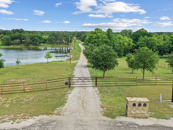 Gorgeous Remodeled Country Retreat on 26 Acres with access to 2 large bodies of water, 1 being a conservation lake and the other a large pond, both stocked with fish. Welcome to your private paradise in the sought-after Lago Linda community of Peaster. This beautifully remodeled 3-bedroom, 3-bath home with a large bonus room offers 2,183 sq ft of stylish living space. Step inside to discover thoughtful upgrades throughout — wood floors, new carpet, an updated kitchen with white cabinets and gorgeous granite, a huge walk-in pantry, a formal dining room with built-ins, a gorgeous living room with a fireplace and built-ins, new windows, and doors. The spacious living areas feature a LOPI fireplace insert & a wood-burning stove. The home’s efficiency and care are second to none: additional blown-in insulation for year-round comfort. 3-year-old Class 4 roof, both AC heat-pump units are newer, 2-ton brand-new; 3-ton, 6 years old. Enjoy a sparkling pool with a heat pump that extends the swim season by several months. The front pond and stocked lake are teeming with bluegill, bass, crappie, and catfish — it’s not uncommon to land a 5-lb bass! This property truly shines with a 30x50 shop with electricity, a roll-up door, and a walk-through door, plus an additional 20x30 attached breezeway for equipment, and an attached 11x19 and 10x11 storage. 2 high-yield wells easily supply the home, shop, and 10-zone sprinkler system without ever needing recharge. Wildlife lovers will appreciate the abundance of turkeys, deer, and Canada geese. The sandy-loam soil is ideal for horses or cattle; the west pasture is already fenced on two sides. With a bit more fencing, you’ve got a turnkey setup. The shop and wells sit on their own electric meter with room for expansion. Whether you’re fishing at sunrise, swimming under the Texas stars, or sipping coffee while watching the wildlife wander by, this remarkable property offers an unmatched lifestyle of peace, space, and natural beauty.