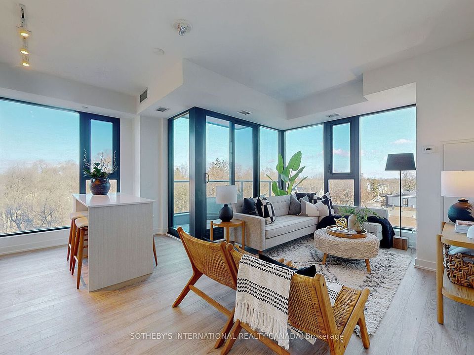 Brand-new premium ravine suite in prestigious Lawrence Park Toronto. Two separate bedrooms and two full baths. One parking and one locker included. Renowned Quadrangle Architects design with top notch selections. Corner unit embraces utmost privacy and tree-top views. A hard-to-get preferred Lytton model. Selective luxurious finishes. Best northeast exposure. Much quieter compared to Lawrence facing. Successful clean layout. No pillar. No lengthy hall. No waste space. Second room away from primary bedroom and serving as an office or kids homework room. Quartz kitchen and modern vanities. Vinyl plank floor. Wraparound floor-to-ceiling thermal windows with ample sunlight. Upscale appliances. Exclusive locker located conveniently on the same floor. Locker 6-26. Included underground parking near the entrance and easy to access. Parking 2-10. The building features state-of-the-art architecture. Fabulous subdued horizontal lines, bronze metal and gunmetal grey palette, double-height porte cochere and tall elevations. Inviting amenities - complimentary visitor parking. 24 hour concierge. Fully equipped gym. Yoga/stretch studio. Meeting room. Kitchenette. Co-working lounge. Ground ravine lounge. Rooftop ravine terrace. Pet spa. Affluent neighbourhood and sophisticated connectivity. Steps to Havergal College and a comprehensive list of top public and private schools: Lawrence Park Collegiate Institute, Glenview Senior P.S. and John Wanless P.S. Minutes drive to Upper Canada College, Crescent, BSS, TFS, St. Clements and Hebrew schools. Excellent proximity to public library, urban parks, walking/biking trails, golf and social clubs, sport facilities, medical services, TTC subway, Hwy 401, Pusateri's, Metro, Loblaws City Market, Shoppers Drug Mart, Starbucks, fine dining, Yorkdale Shopping, urban entertainment and all Lytton Park hotspots. Welcome to be the first family to move into this luxury ravine suite. Unlimited picturesque scenery and natural oasis to enjoy.