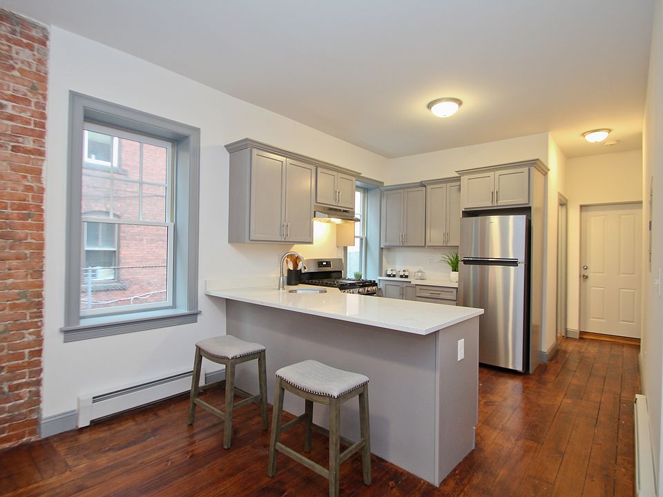 This 3-bedroom apartment includes 2 full bathrooms, 2 levels, exposed brick throughout, beautifully restored hardwood floors, granite countertops, washer/dryer in-unit, newly remodeled everything, all new appliances, high ceilings, high efficiency on-demand hot water heater and furnace, heavy insulation throughout, LED light fixtures, new windows, new flooring, a private covered porch, water, trash removal, walking distance to restaurants/bars/CTRail/CTFastrak/Downtown Hartford, a grocery store next door, and landlords on the block! Restaurants, coffee shop, ice cream, bars, a grocery store (!), and the Capitol Building all next door. Parkville Market and multiple grocery stores just blocks away.