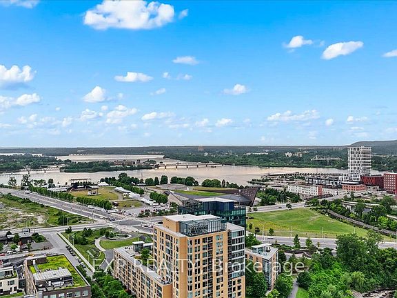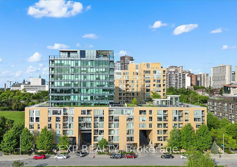 Modern urban living in the heart of Lebreton Flats! Experience downtown Ottawa living at its best in this upscale condo perfectly situated just steps from the Pimisi LRT station, Ottawa River pathways, and a short walk to Parliament Hill. Enjoy a bright, open-concept layout featuring floor-to-ceiling windows that flood the space with natural light and showcase northeast views of green space and the Pumphouse Whitewater Course. The main living area is enhanced by gleaming hardwood floors, while the modern kitchen boasts granite countertops, rich cabinetry, and high-end stainless-steel appliances ideal for those who appreciate both style and function. The private balcony provides a perfect spot for morning coffee or evening relaxation. The primary bedroom features custom built-in shelving for added storage. A stackable washer/dryer is conveniently tucked into the laundry closet, and custom window blinds complete this move-in-ready unit. Residents also enjoy access to premium amenities, including an indoor pool, fitness centre, rooftop terrace with BBQs, indoor bike storage, and landscaped courtyard. The building also promotes sustainability with a composting and recycling program plus maintained rooftop gardens. Discover modern living surrounded by nature, culture, and convenience all in one of Ottawa's most dynamic neighbourhoods.