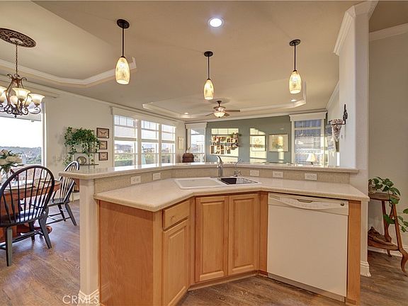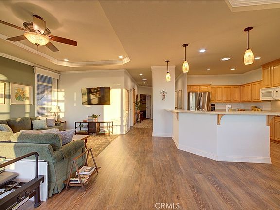 This exquisite property boasts a spacious 2 bed, 2 bath, 1,680 sqft open floor plan, seamlessly blending the living room, kitchen, and dining area into an inviting “great room” that’s perfect for entertaining and relaxation. The 180 degree coastal and ocean views are showcased through numerous windows and an idyllic back patio. The kitchen opens into the living room and offers a stainless steel sink, built-in appliances, and a reverse osmosis system. The primary suite includes a walk-in closet, a soaking tub and a large walk-in shower, perfect for your own private retreat. Seven solar tubes infuse the home with natural light. Tasteful laminate flooring throughout and crown molding all contribute to your sense of luxury.