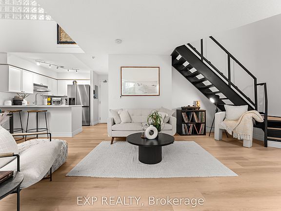 A Townhome in the Sky - Where Urban Living Meets Elevated Serenity Perched on the 5th-floor rooftop, this rare 1+den residence redefines condominium living with its expansive private terrace - a secluded retreat that feels more townhome than tower. Bathed in natural light and framed by glimmering water views, this home blurs the line between indoor comfort and outdoor luxury. Inside, every detail has been carefully curated. Newly installed floors flow seamlessly through an open-concept layout anchored by a striking natural gas fireplace - a focal point of warmth and quiet sophistication. The kitchen, beautifully updated with clean lines and contemporary finishes, opens effortlessly into the living space, while the newly renovated powder room adds a touch of understated refinement. The terrace - complete with a gas line for your BBQ - invites morning coffee rituals, sunset dinners, and evenings under the stars. It's an entertainer's dream and a private sanctuary in one. Practical touches elevate everyday life: parking is conveniently located near both the elevator and staircase for easy access, and a locker offers additional storage. Freshly painted in timeless neutral tones, this turnkey residence is ready to welcome you home. A rare opportunity to experience the intimacy of a townhome with the allure of skyline living-all in one exceptional address.