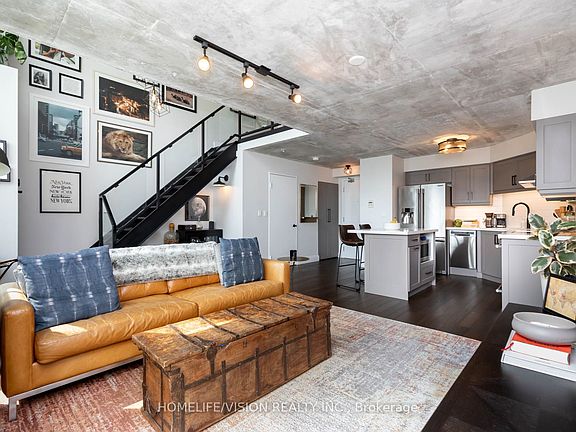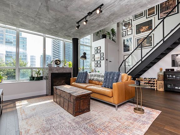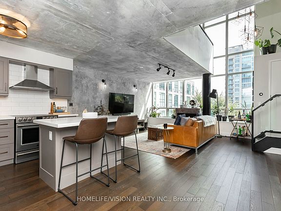Welcome to 250 Manitoba St- Mystic Pointe! This completely renovated 2 level loft features high quality finishes and design. With approx. 950SF spread over two floors, soaring 17 foot exposed concrete ceilings from the main floor and gorgeous floor to ceiling windows allowing the loft to be flooded with natural light - this loft is truly spectacular and unique! This residence also features wide plank hardwood floors, powder room on main level, gas fireplace, modern kitchen with quartz counter tops and quartz kitchen island, custom roller blinds, spa like master ensuite(11' x 5'5') featuring an enclosed glass shower and a Turkish bath, gorgeous custom walk-in closet( 10' x 5') with custom organizers, motorized blinds, a large den perfect for an office, nursery or 2nd bedroom conversion, stylish designer light fixtures and wall sconces & Much More! Mystic Pointe building amenities include a gym, squash court, sauna, rooftop garden and a party room Located 15 Minutes to downtown, will make an easy commute into work or for a night on the town! Steps to the Lake, parks, transit/Go, trails, shops, cafes, grocery stores, Humber Bay Shores & much more! Parking and Locker Included!