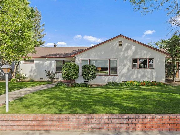 Make this your Home Sweet Home! Wonderful, open & cheery floor plan shows 4 bedrooms & 2.5 baths with a large backyard & patio for the whole family to enjoy. Plenty of space for swimming pool. Step thru front door and into the spacious living room with large picture window & hardwood flooring (hardwood thru all bedrooms & hallway.) Kitchen is located in the center of home with plenty of Maple cabinetry, electric stove, dishwasher & even a small desk. Dining area just steps from the kitchen. Separate family room shows lots of shelving for books or decor, centered around a cozy rock fireplace. Master bathroom provides a convenient walk-in shower with grab bars. The guest bath has a retro look & comes with a bathtub & separate shower. You'll appreciate a half bath & laundry area with cabinets just off the family room. Plus,there are various fruit trees & grape vines for your enjoyment! Even garden boxes. Home is within walking distance of schools, shopping, restaurants & the downtown area