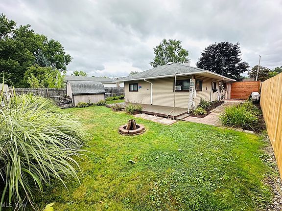 Austintown WOW! You’re gonna have to run as fast as you can to see this amazingly updated 3 bedroom, 1 bath slab ranch with 840 ft.² of living space where you can just "move right in"! You have plenty of parking as your driveway widens to a double wide concrete pad so no garage will not even matter at this amazing price! You can always install one later. You have a huge shed in the back for storage which can house all of your mowers, kids bikes, and yard equipment! You are going to absolutely love your completely fenced in backyard with a private hot tub area with paver patios which would also be great for an outdoor bar area or dad's man-cave area! Your huge Trex deck in the back spans the entire width of the house & is great to sit and enjoy your morning coffees or for those summer barbecues & entertaining! There is a garden on the right side of the house that you can maintain and keep or you could simply turn it back into a yard! You’ll enjoy those cool Ohio fall evenings while snuggling up around your backyard fire pit! Your new home "POPS" the second you walk into your open floor plan with newer luxury vinyl plank flooring throughout, modern paint colors, & newer cabinets in the kitchen! Your convenient laundry area is located off the kitchen by the side door to the backyard area. Your bathroom has ceramic tile, modern light fixtures, hardware, and newer vanity! Your 3 bedrooms are at the rear of the home and are freshly painted w/clean white trim and baseboards! This Austintown beauty will not last in this sellers market and especially at this price under $110k!! Better book your personal showing TODAY before it's gone!! Bonus: All appliances stay except for the washer and dryer!