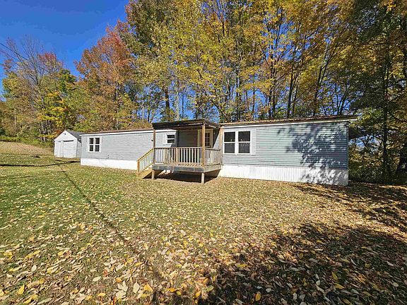 Freshly renovated mobile home situated on 0.49 acres in a quiet country setting. Recent updates include interior paint, flooring and storm doors. Also featuring efficient double-pane vinyl windows throughout and a weatherization performed by NETO in 2019. Offering a slab foundation, primary bedroom with attached half-bath, aluminum siding, and a corrugated metal roof ensuring longevity and minimal upkeep. Serviced by a propane-fired wall furnace, with public water and sewer. Outside, a detached single-bay garage with electricity - likewise on a slab foundation - provides additional parking/storage. Located just a short distance from town amenities, within close proximity to the VAST trail system, and just 12 minutes from Jay Peak Resort. This mobile home is priced to sell and is an excellent opportunity for Buyers seeking an affordable primary residence or a reliable rental/investment property.