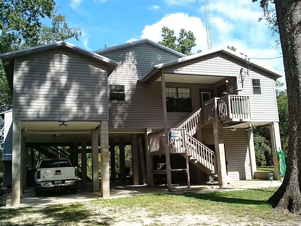 Well maintained, stilt river home on the banks of the beautiful Suwannee River. Large carport/boat storage area downstairs with secure storage. Front deck, large screen porch with excellent views of the river. Fully furnished with mostly new furniture. New dishwasher and disposal. Save those knees it has a Functional Elevator!!!