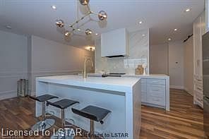 One of the nicest buildings near Richmond Row in London! All utilities are included in the condo fee! This unit in the luxurious Wellington Park building offers spectacular southern views of the skyline and tree-lined Wellington st. boulevard. Spacious living with 1435 sq.ft. 2 heated underground parking spots included. Nearly $100,000 in upgrades with large open concept floor plan. Quartz countertops, glass walled shower with body jets in the luxurious marble walled ensuite. Oversized walk through closets in the primary bedroom. In unit laundry, island kitchen. Large and spacious principal rooms. Upgraded kitchen cabinetry with marble backsplash, full floor to ceiling marble feature wall in the formal dining room. Upgraded light fixtures. Premium amenities include: excercise room, games room, library and guest suite. Excellent value in a prime core location!