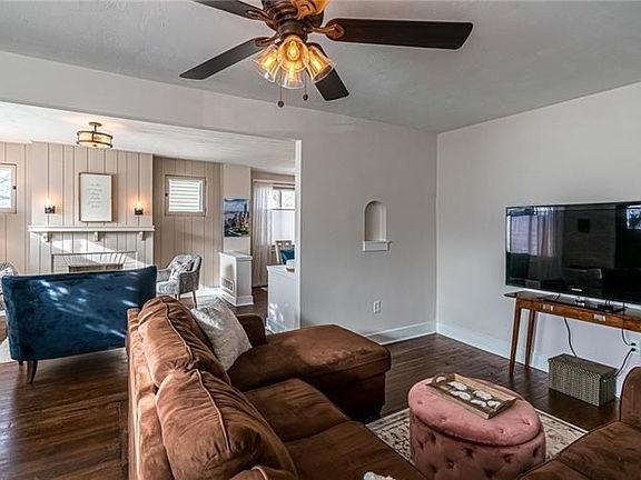 This amazing brick bungalow will surprise you with its spacious, open, unique floor plan & awesome updates! The foyer welcomes you into the wide open family & sitting rooms with decorative fireplace. A unique exposed chimney in the dining room will be a perfect art wall. The main level full bath is stylish with Italian tile flooring, subway tile tub surround & a granite topped vanity. You'll LOVE the kitchen with herringbone floor, stainless appliances, subway tile backsplash & granite countertops. Two bedrooms, each with a ceiling fan & ample closet space complete the main level. An upper level master retreat features a spa-like bath with wood-look tile & oil rubbed bronze fixtures plus 2 walk-in closets. A quaint covered stone porch provides access to the one car detached garage. Newer HVAC, some new windows, all new light fixtures, new gutters/downspouts & SO MUCH MORE! Great location;10 minutes to town! The charm & character you've been searching for!